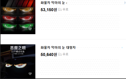 - 화물차 전면 유리 상단이나 하단에 사람이나 동물의 눈처럼 보이는 LED 장치를 부착한 신종 튜닝 장치